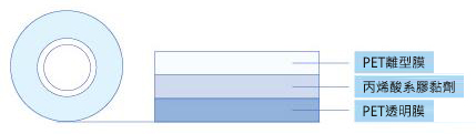 以透明PET膜為基材,塗佈UV光固化再剝離型丙烯酸黏劑製作而成的保護材料。