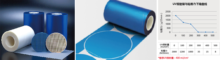 ●UV照射前高黏著,貼附性好,UV照射後黏著力明顯下降,易剝離。
